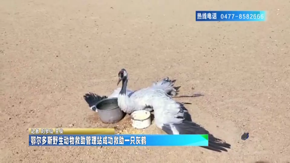 鄂尔多斯野生动物救助管理站成功救助一只国家二级保护动物——灰鹤
