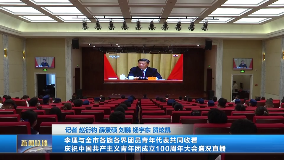 李理与全市各族各界团员青年代表共同收看庆祝中国共产主义青年团成立100周年大会盛况直播