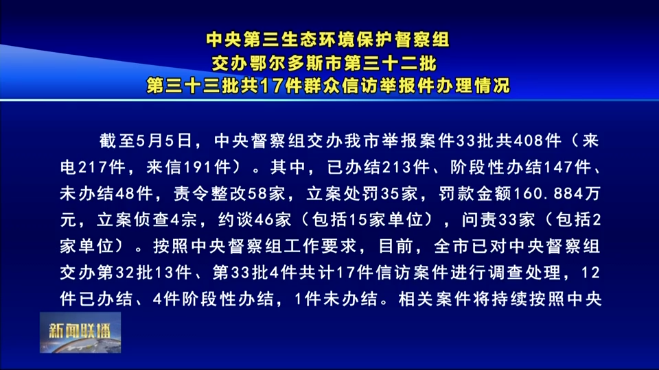 中央第三生态环境保护督察组 交办鄂尔多斯市第三十二批、第三十三批共17件群众信访举报件办理情况
