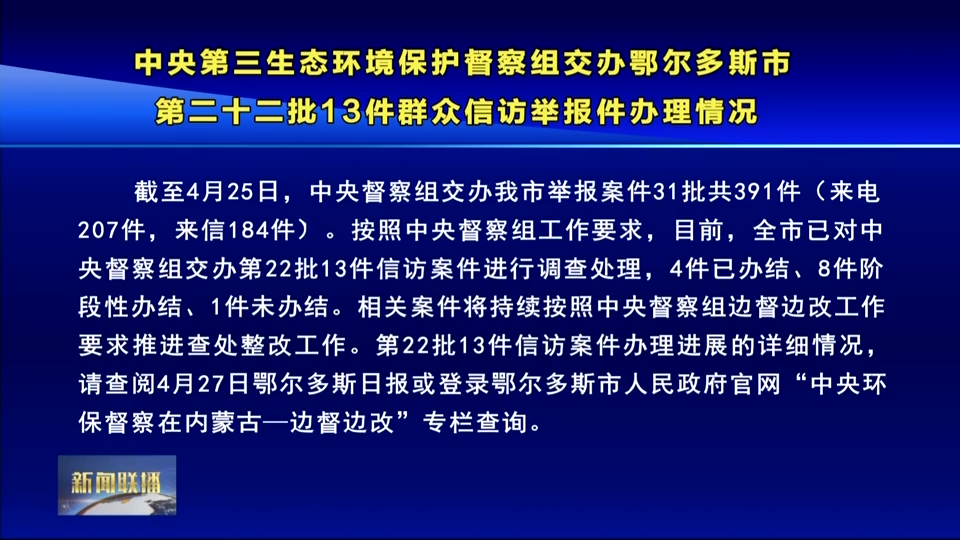 中央第三生态环境保护督察组交办鄂尔多斯市第二十二批13件群众信访举报件办理情况