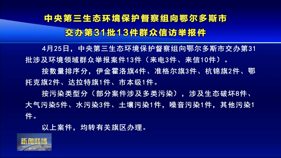 中央第三生态环境保护督察组向鄂尔多斯市交办第31批13件群众信访举报件