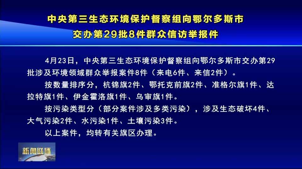 中央第三生态环境保护督察组向鄂尔多斯市交办第29批8件群众信访举报件