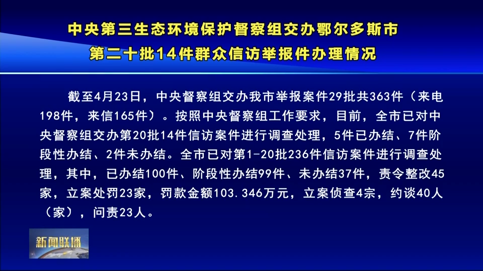 中央第三生态环境保护督察组交办鄂尔多斯市第二十批14件群众信访举报件办理情况