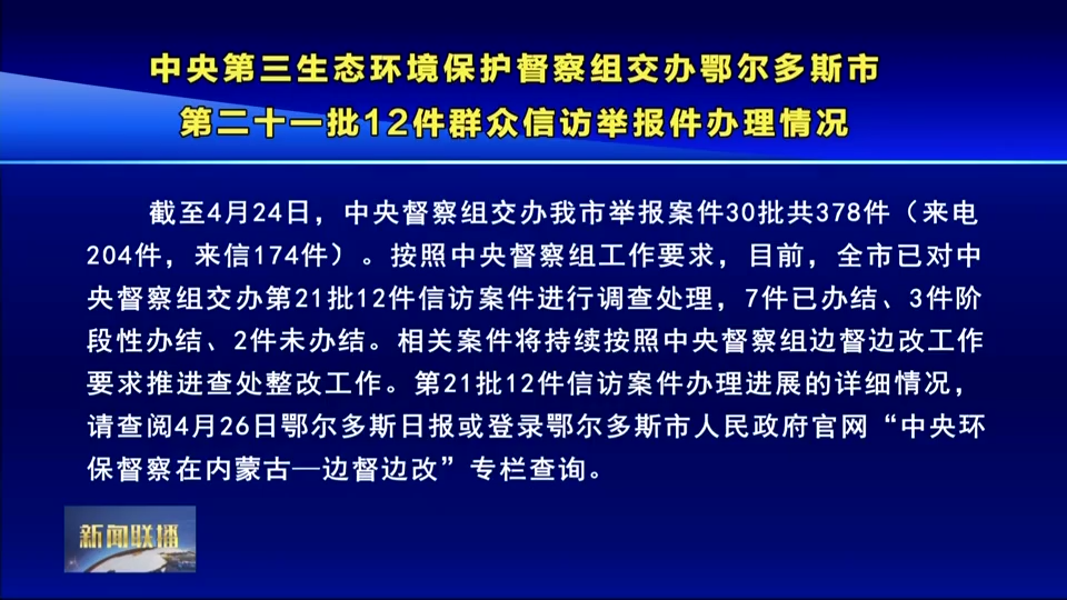 中央第三生态环境保护督察组交办鄂尔多斯市第二十一批12件群众信访举报件办理情况