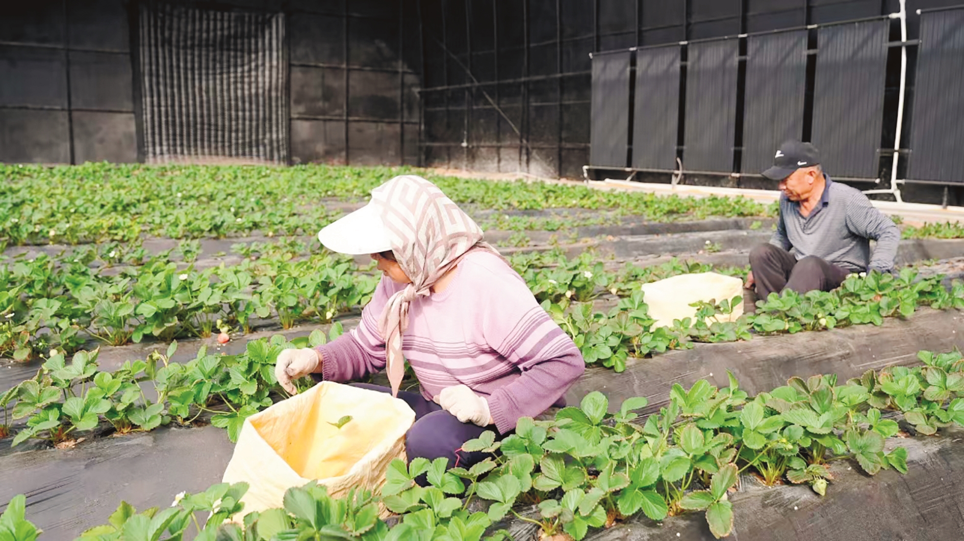 近年来,我市依托地域优势,构建“日光温室+拱棚+智能大棚”多元设施体系,大力发展设施农业,带动农牧民增产增收。图为近日,位于杭锦旗吉日嘎朗图镇的内蒙古印象沙谷农牧产业发展有限公司工作人员在智慧大棚里忙碌。 市融媒体中心记者 张昊秋 任学港 通讯员 折伊琳 摄