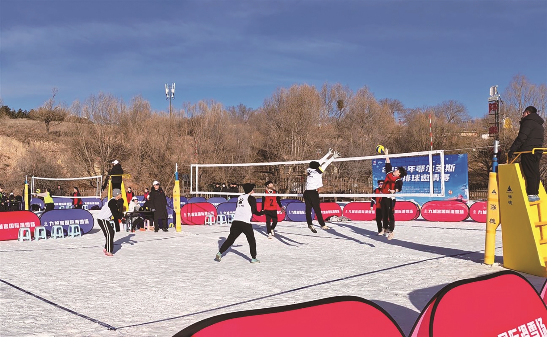 1月16日,2026年鄂尔多斯雪地排球邀请赛在东胜区九城宫国际滑雪场激情开赛。 本次比赛为期3天,共吸引来自宁夏、天津、北京等地60多名运动员参赛。比赛采用3人制,分设男子组与女子组,所有场次均采用三局两胜制。 此次赛事由市教体局和东胜区人民政府主办,是第十五届鄂尔多斯冰雪文化旅游季8大主题热赛之一。此外,我市还将举行雪地曲棍球、蒙陕甘宁大型滑雪、内蒙古滑雪超级联赛等比赛。 市融媒体中心记者 郭路怡 曹磊 摄
