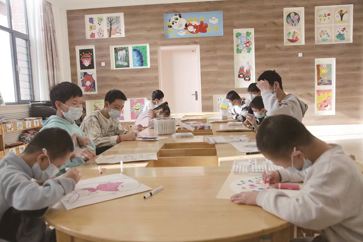 康复师为孩子做康复训练。