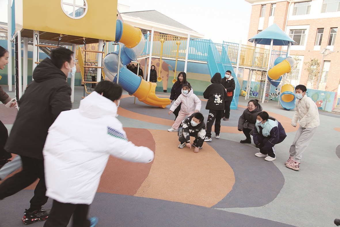 老师和儿童一起玩游戏。
