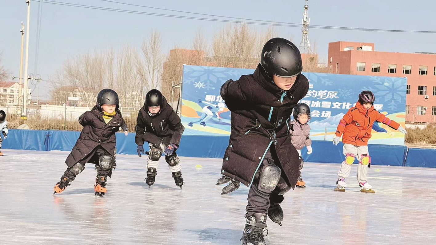 近日,鄂托克旗举办的滑冰项目公益课开课。 伟力斯 毫日娃 摄
