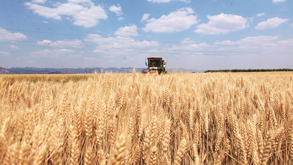 2025年5月24日,山东省临沂市平邑县农民驾驶收割机收割小麦。 新华社发 武纪全 摄