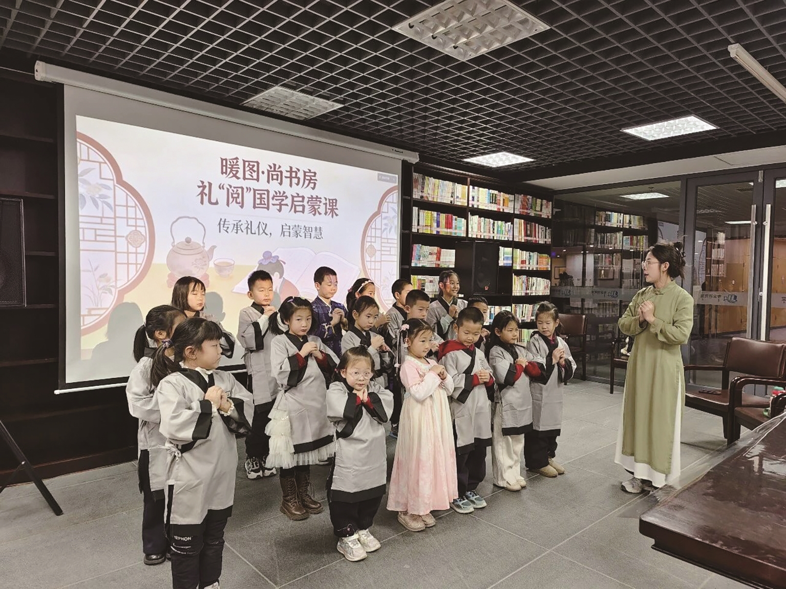 近日,鄂尔多斯市图书馆礼“阅”国学启蒙课开启,孩子们身着传统国学服饰,在老师的带领下,通过系统学习孝亲礼仪,让传统文化浸润童心。 王惠 摄