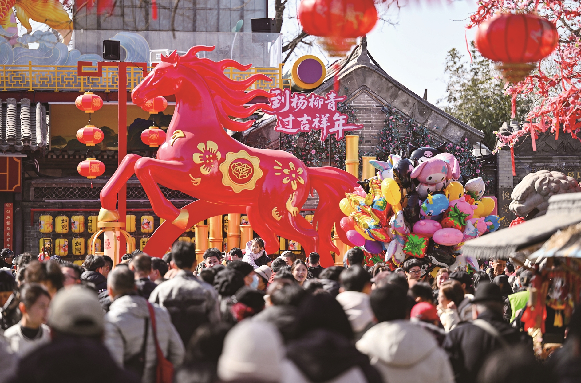 2月22日,游客在天津杨柳青古镇游玩。 新华社记者 赵子硕 摄