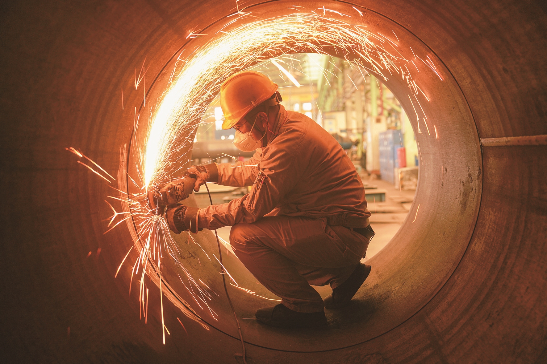 2月24日,在四川眉山天府新区中建钢构四川有限公司车间,工人赶制钢结构产品。 新华社发 翁光建 摄