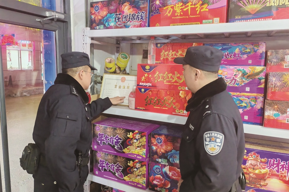 春节期间,准格尔旗公安局聚焦烟花爆竹销售、储存、运输、燃放全链条监管,全面启动覆盖城乡、拉网式的烟花爆竹安全专项排查整治行动,以严管严控、严查严治的实际行动守护万家灯火,确保群众度过一个平安祥和的春节。准轩 摄