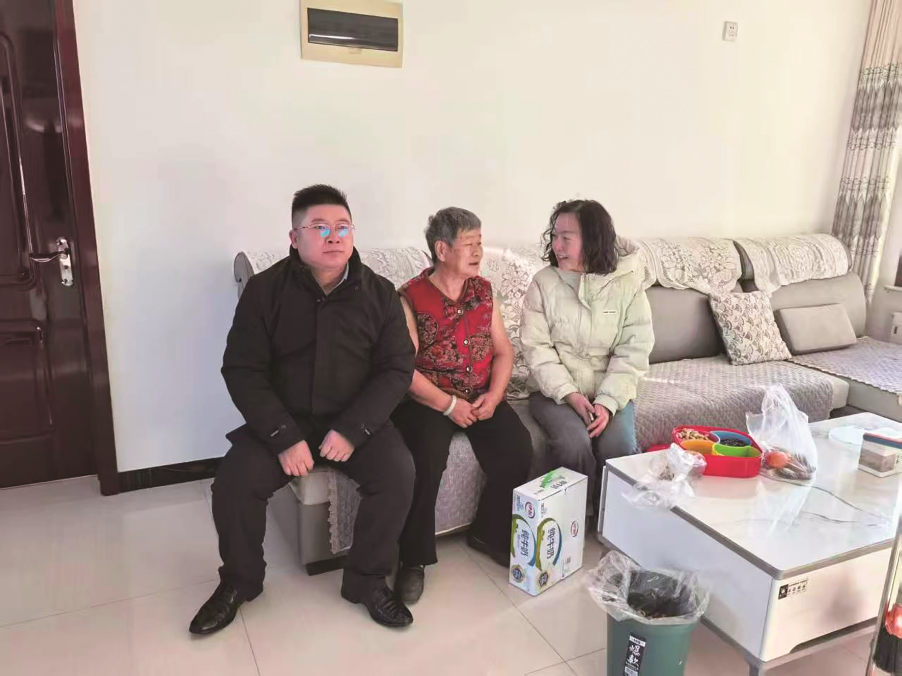 工作人员为辖区老人送去牛奶。