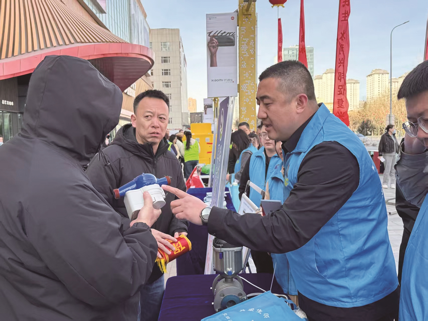 今年3月22日是第三十四届“世界水日”,当日,东胜区水利局、东胜区水政水资源服务中心等单位联合开展“节约保护水资源 共建暖城幸福水”主题宣传暨节水“五进”主题活动。此次活动采用“线上+线下”联动模式,通过政策宣讲、用水咨询、互动宣传等方式,全方位、多角度普及节水知识与法规,凝聚全社会“关心水、节约水、保护水”的强大合力。 王俊清 摄
