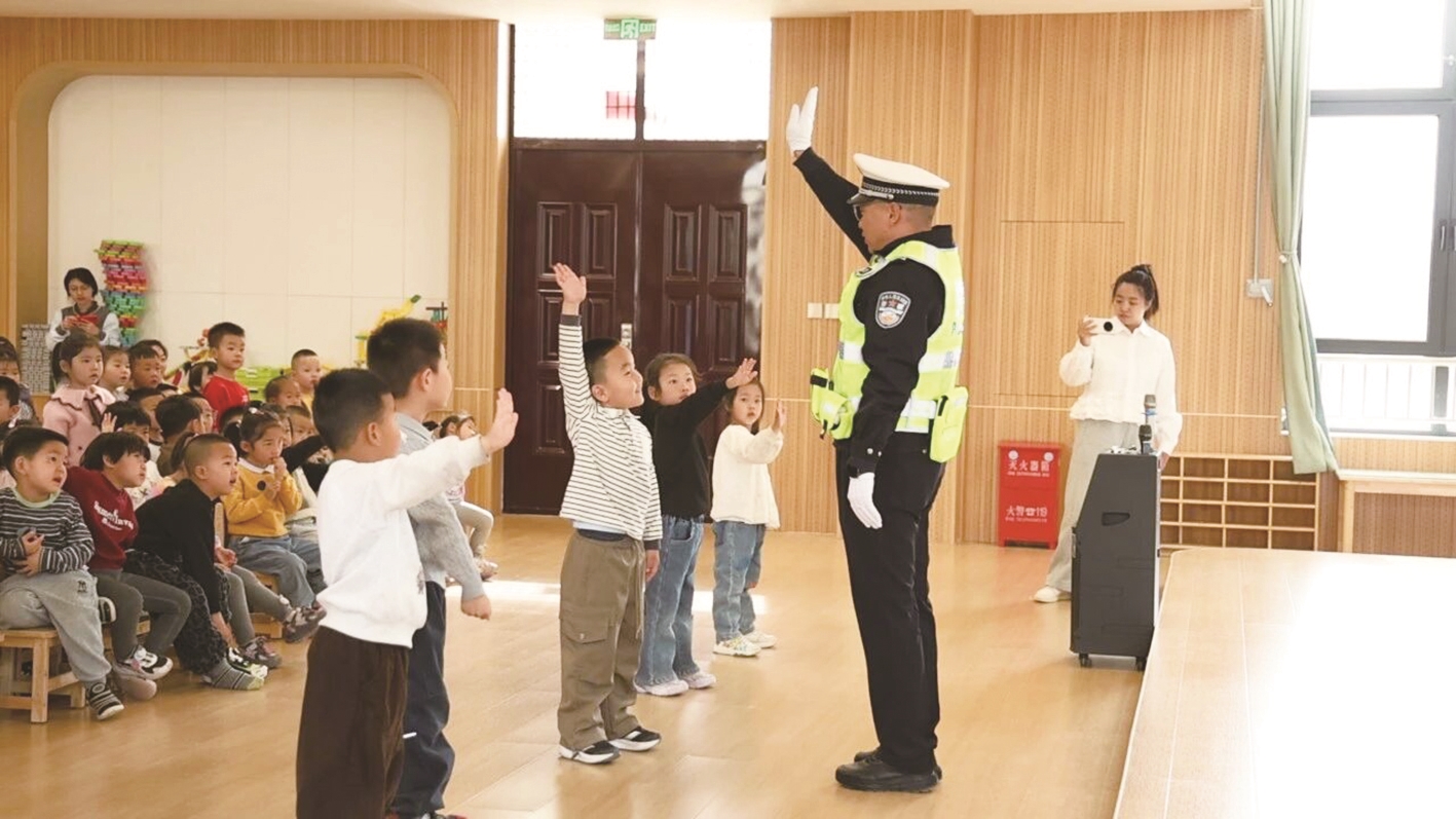 近日,乌审旗第七幼儿园邀请幼儿家长与属地民警共同担任“特邀老师”,通过沉浸式互动体验、安全知识普及等方式,为孩子们带来一堂集趣味性、知识性、实践性于一体的交通安全特色课,推动学校家庭社会协同育人走深走实。 张晶晶 冯彤 摄