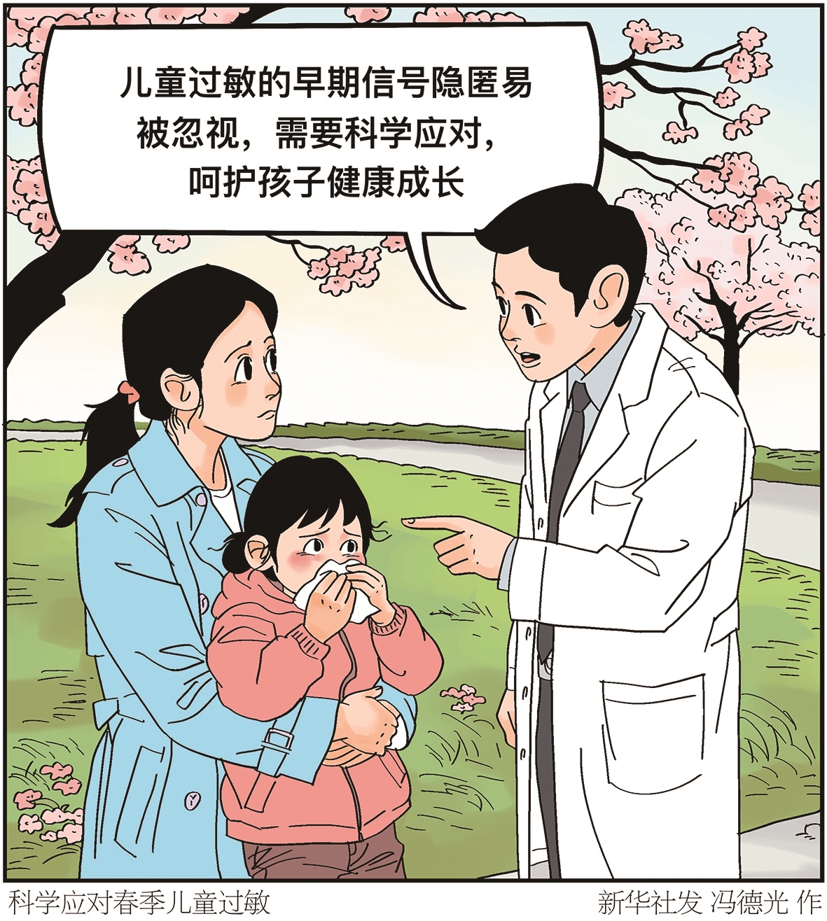 春风送暖,草木萌发,儿童外出踏青增多,过敏性疾病也随之进入高发期。面对孩子的过敏症状,不少家长容易陷入“长大就会好转”的误区,往往错过早期干预的最佳时机。医生提醒,儿童过敏的早期信号隐匿易被忽视,需要科学应对,呵护孩子健康成长。 新华社发 冯德光 作