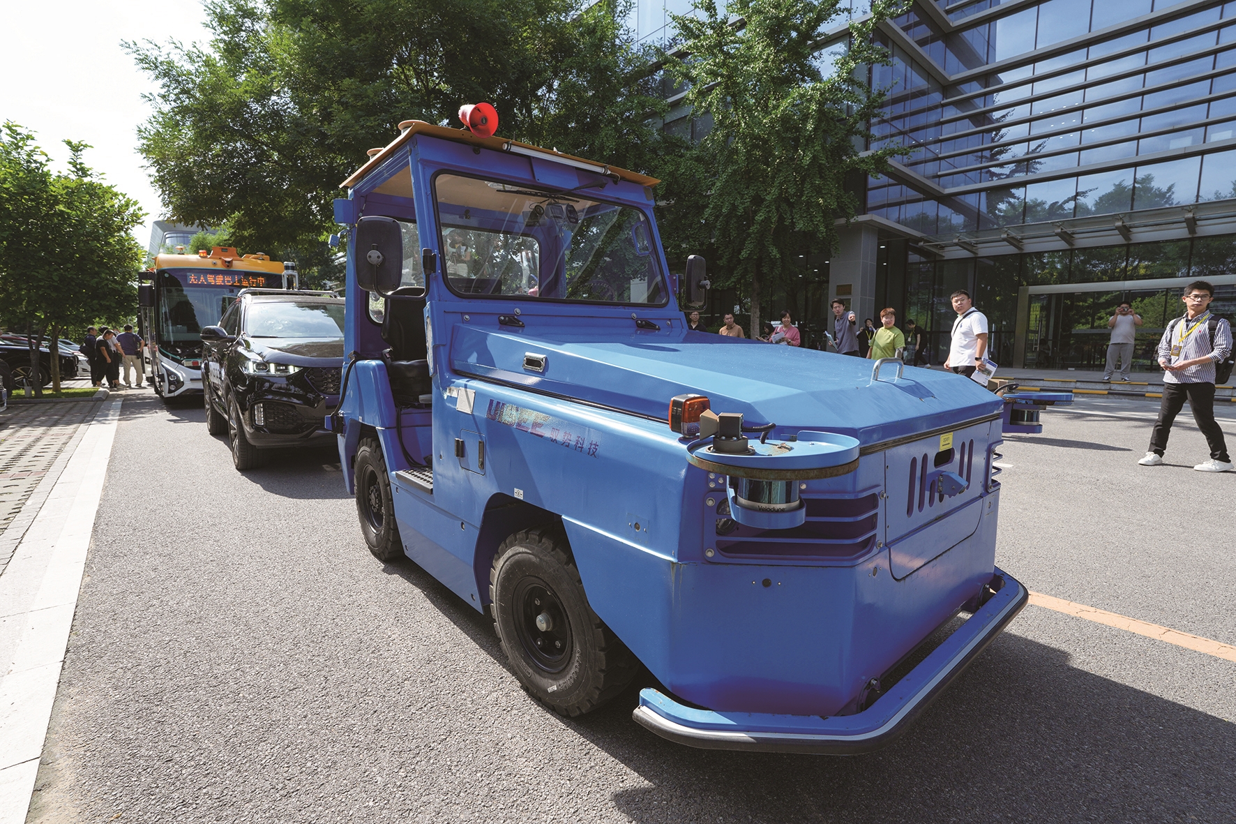 这是在北京驭势科技拍摄的一款用于机场物流作业的无人驾驶牵引车。 新华社记者 鞠焕宗 摄