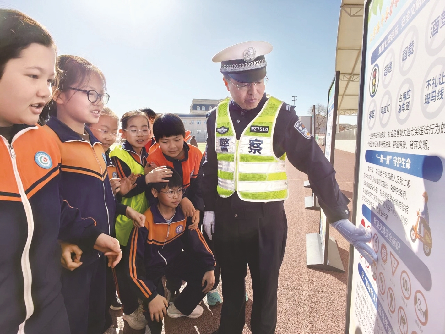 近日,鄂尔多斯各级公安机关民警辅警走进多所辖区学校,开展防欺凌、禁毒反诈、交通安全等系列主题活动。民警辅警化身“安全讲师”,用“法治+安全”的双重守护,为孩子们的健康成长保驾护航。 安轩 摄