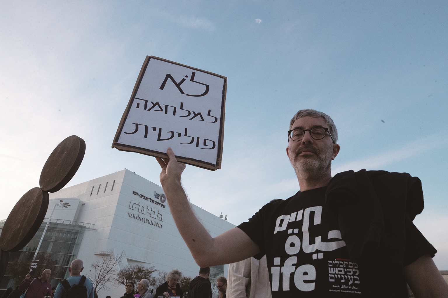 3月28日,在以色列特拉维夫一处广场,人们手持标语参加集会。 3月28日,夜幕降临,以色列特拉维夫市中心的哈比玛广场,约千名以色列民众聚集于此,发出拒绝战争、呼吁和平的呼声。 新华社记者 陈君清 摄