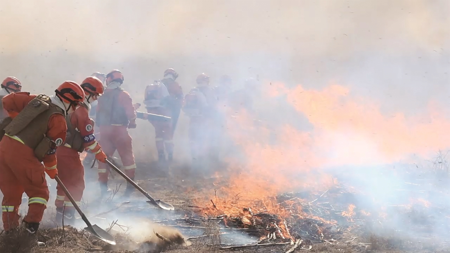 近日,鄂尔多斯市2026年春季森林草原防灭火实战演练在乌审旗举行。来自全市各旗区的专业扑火队员围绕穿越火廊实施紧急避险、草原地表火处置、较大森林树冠火扑救等科目,展开了一场实兵、实装、实战的综合性大练兵,有效检验了森林草原防灭火应急预案的科学性和可操作性,为保护人民群众生命财产安全和生态建设成果奠定坚实基础。陈薇 摄