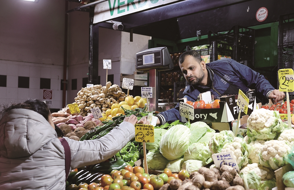 3月31日,在意大利罗马,顾客在菜市场购物。 欧盟统计局3月31日公布的最新数据显示,欧元区3月通胀率攀升至2.5%,远高于2月的1.9%。新一轮通胀“抬头”,将再度增加欧洲民众生活成本压力。 新华社记者 李京 摄