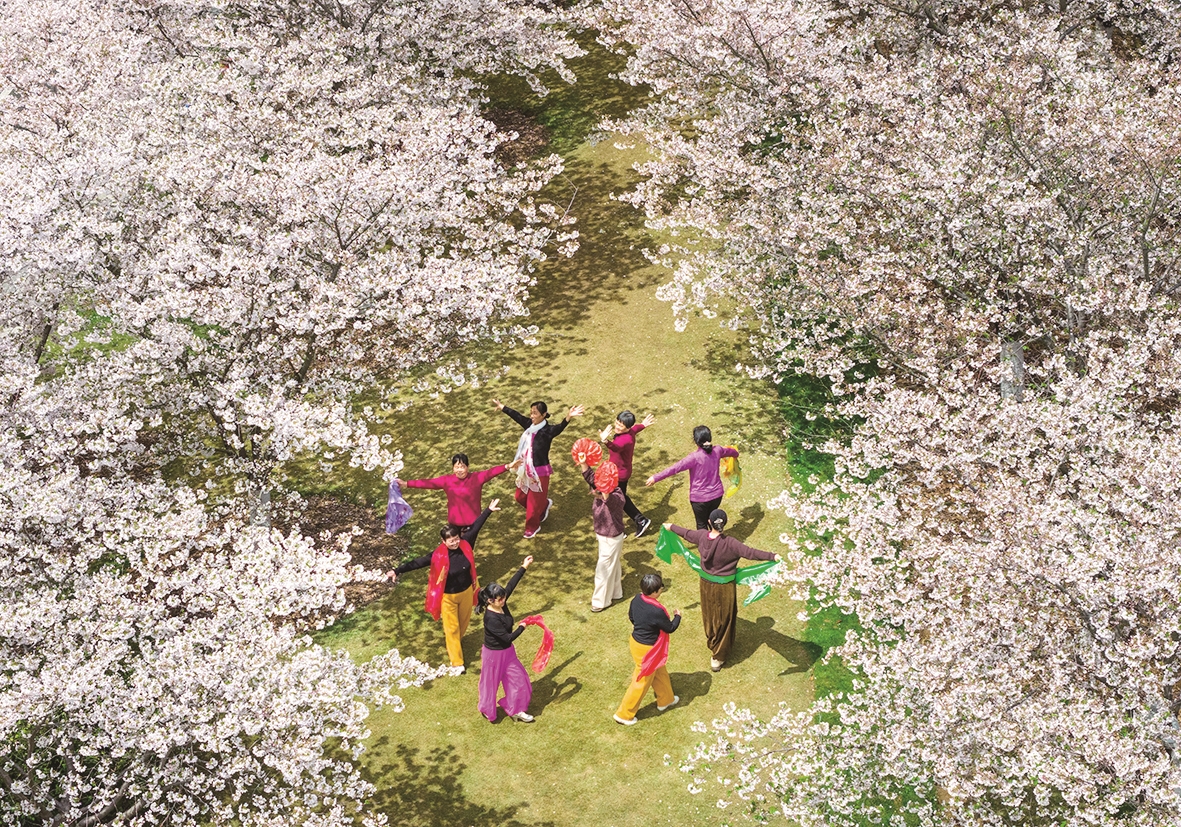 4月1日,游客在浙江省宁波植物园樱花树下休闲娱乐。 清明将至,春意正浓。各地春花争艳,春意盎然,吸引众多市民游客踏青赏花。 新华社发 胡学军 摄
