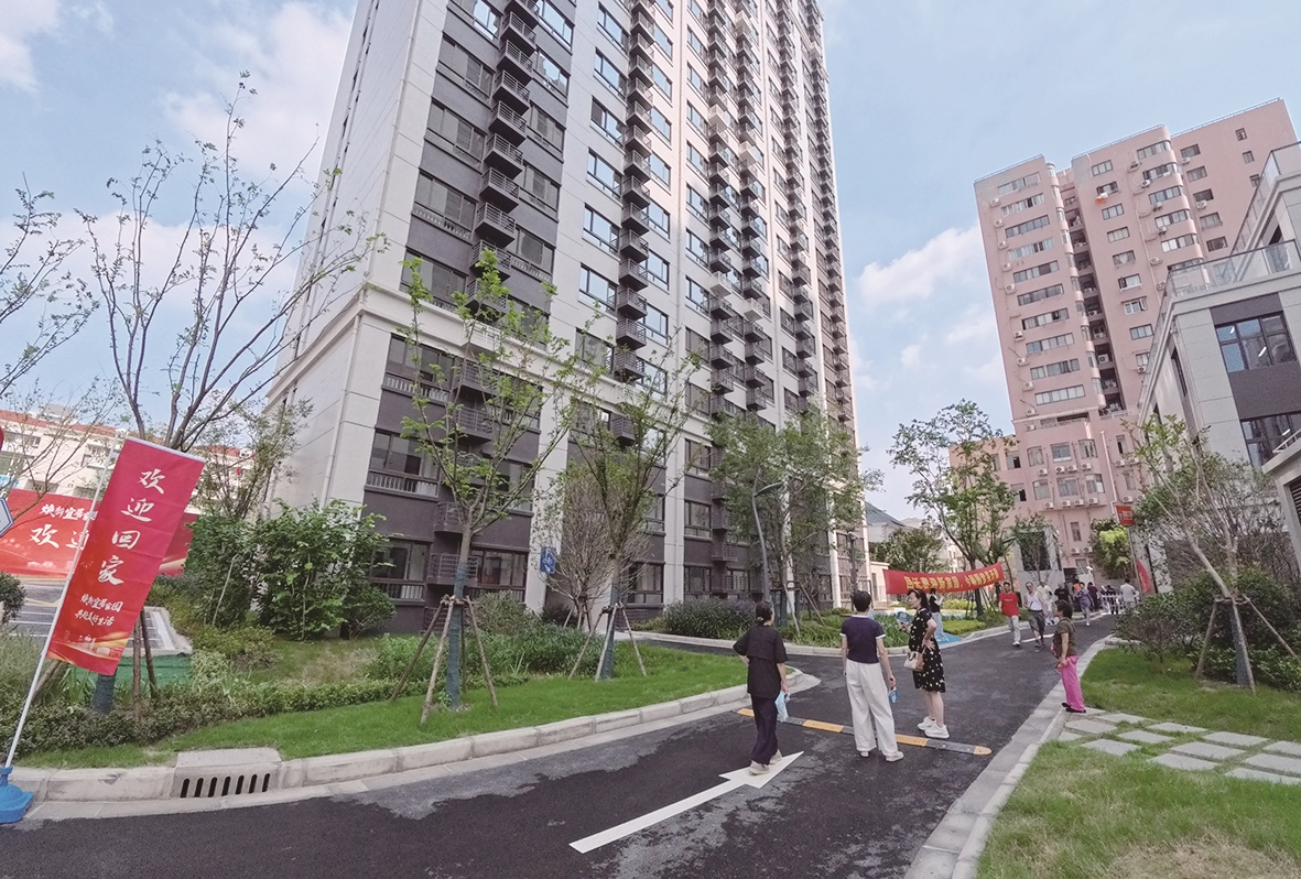 2025年9月15日,居民走在新建成的上海市静安区谈家桥小区内。 新华社记者 方喆 摄