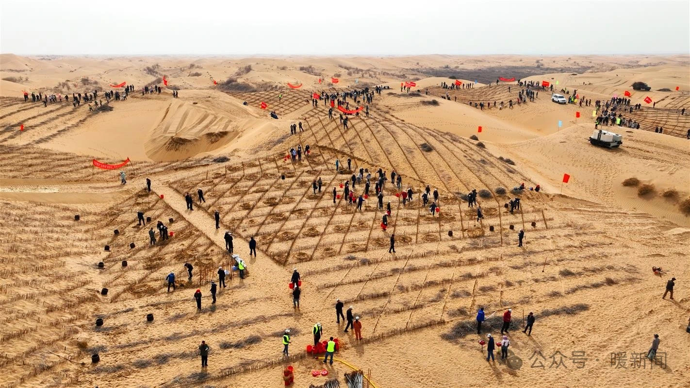库布齐沙漠植树(来自暖新闻公众号)