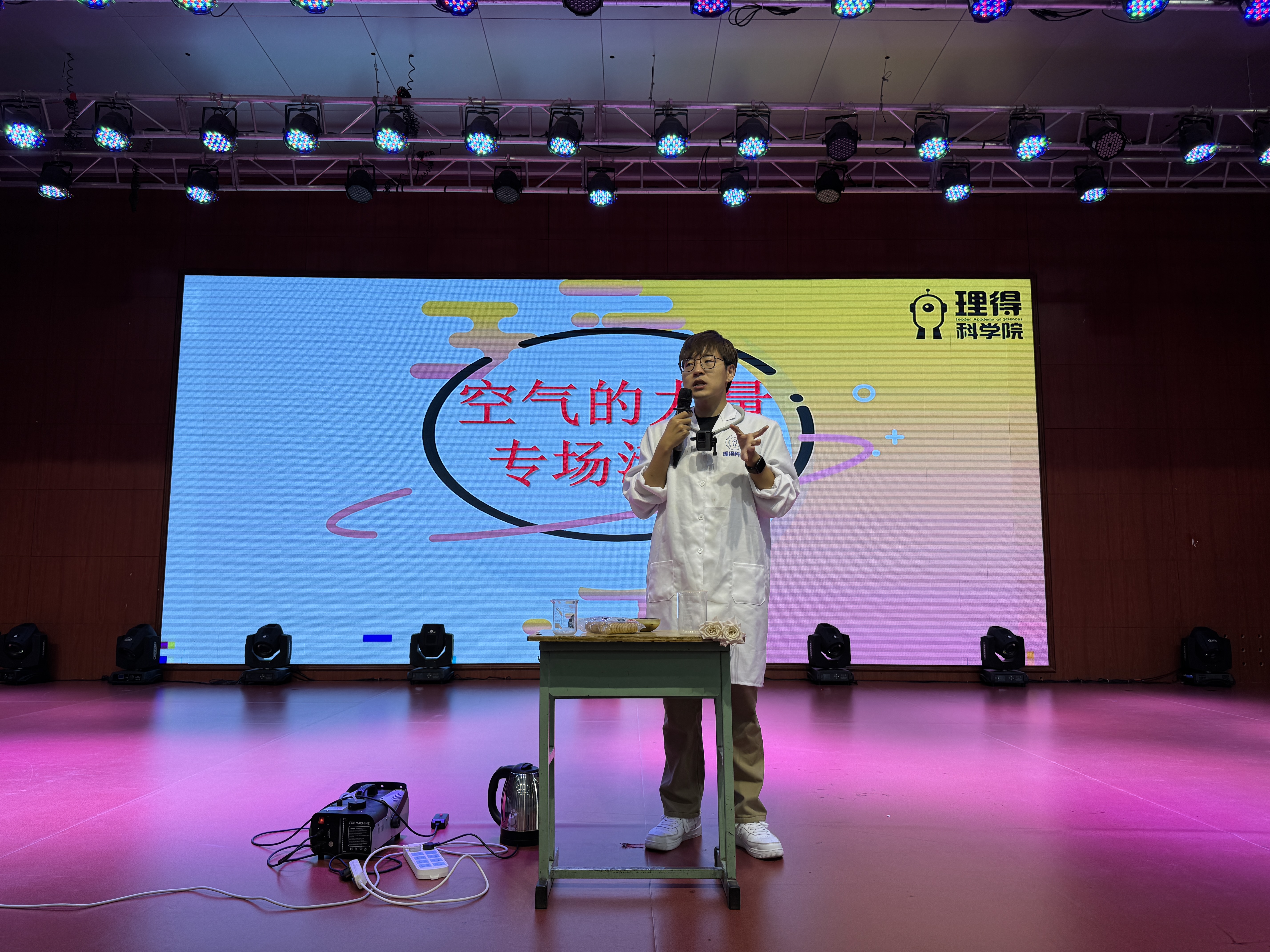 活动现场,来自理得科学院的老师为同学们带来了一场以“空气的力量”为主题的科学实验展演。“空气炮”“马德堡半球”等互动实验,将抽象的物理知识转化为直观生动的现象,引发同学们阵阵惊叹,激发了孩子们对科学的好奇与热情。