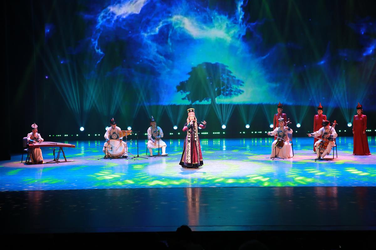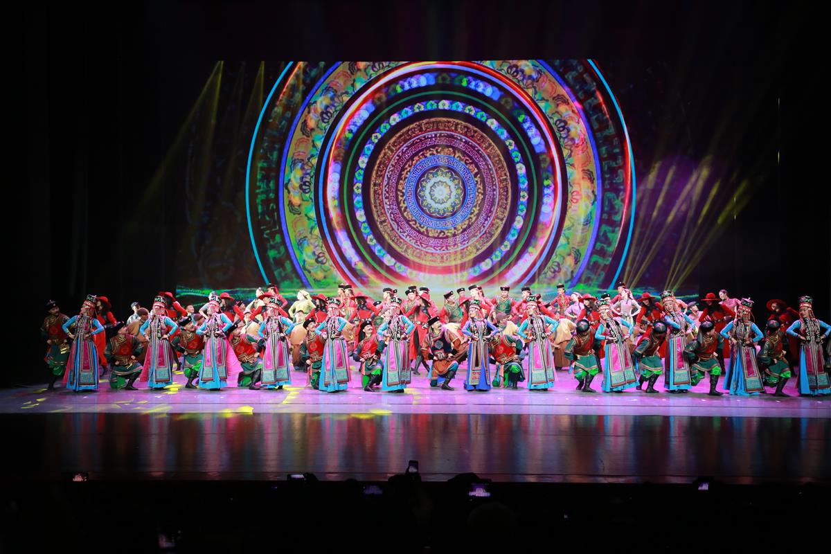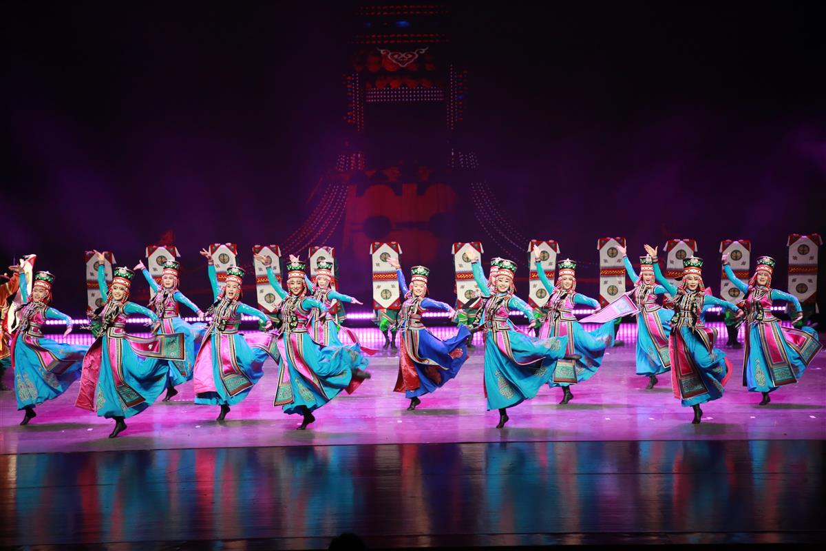 演出在刚刚荣获全国第二十届群星奖的广场舞《欢腾鄂尔多斯》中拉开帷幕。演员们通过灵动的肢体语言、欢快的节奏、刚柔并济的舞步以及精美的服饰,描绘出各民族手足相亲、守望相助的繁荣画卷。随后“文华奖”获奖作品《走进光里》、“群星奖” 获奖歌曲《快乐那达慕》等轮番登场,紧接着一首饱含激情的原创音乐作品——《我的鄂尔多斯》以动人的旋律与朴实的词语,抒发了224万草原儿女对暖城鄂尔多斯这片热土的深情眷恋和痴情向往。