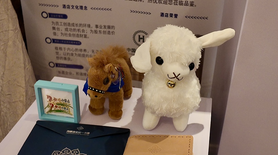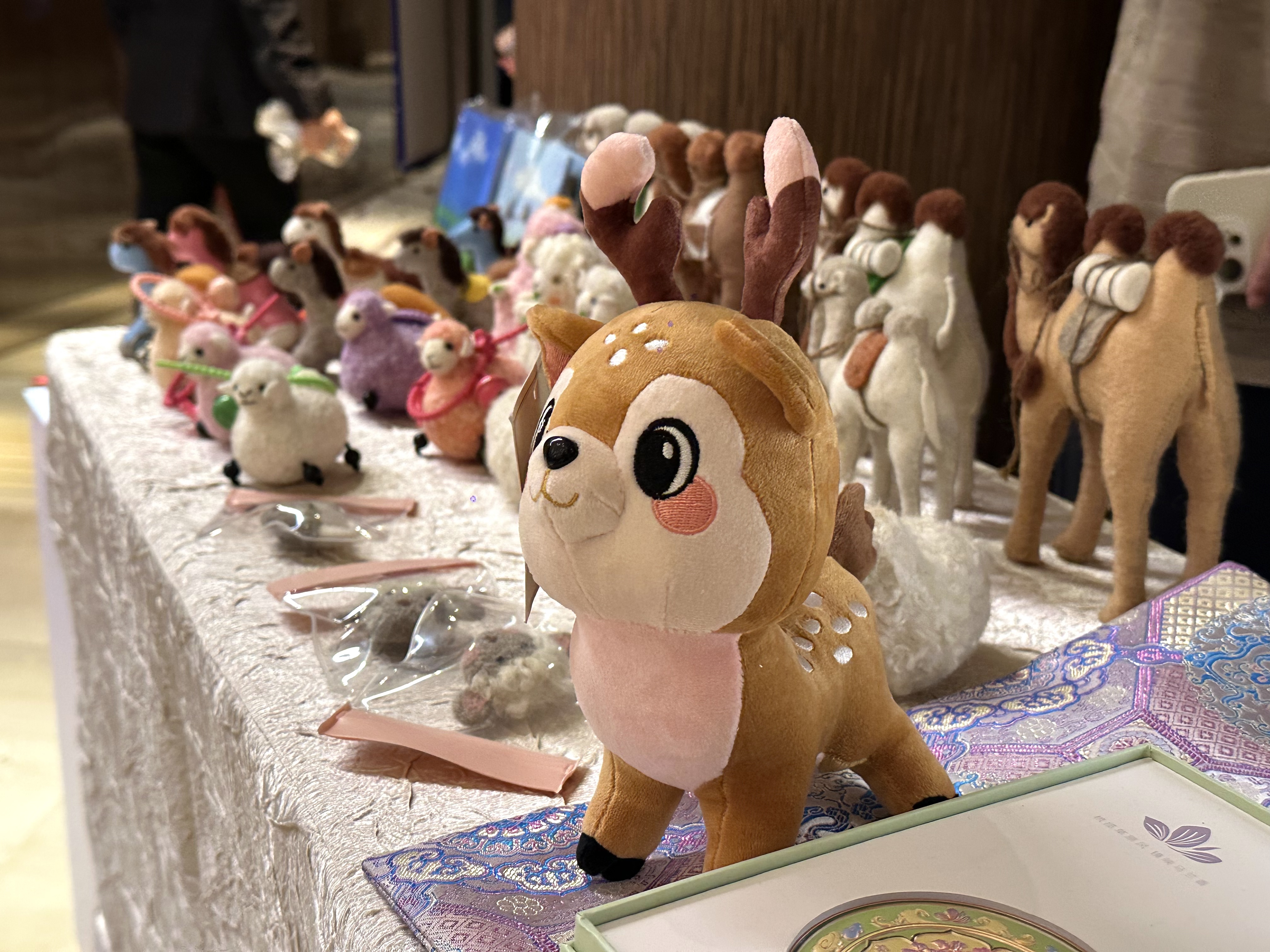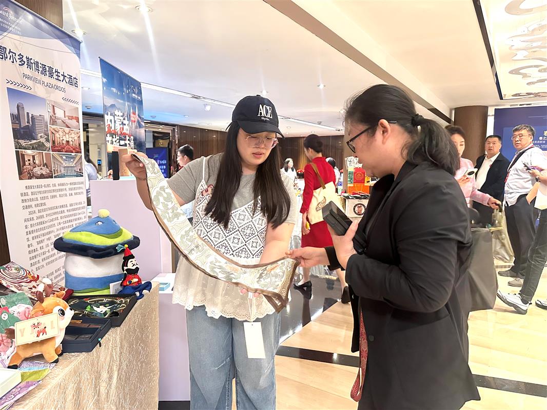 活动现场,还开设了内蒙古特色文旅市集,来自鄂尔多斯市的羊毛毡手工艺品、蒙古大锅茶jelly cat等富有民族特色和时尚个性的文创好物备受欢迎,吸引往来的游客驻足体验。