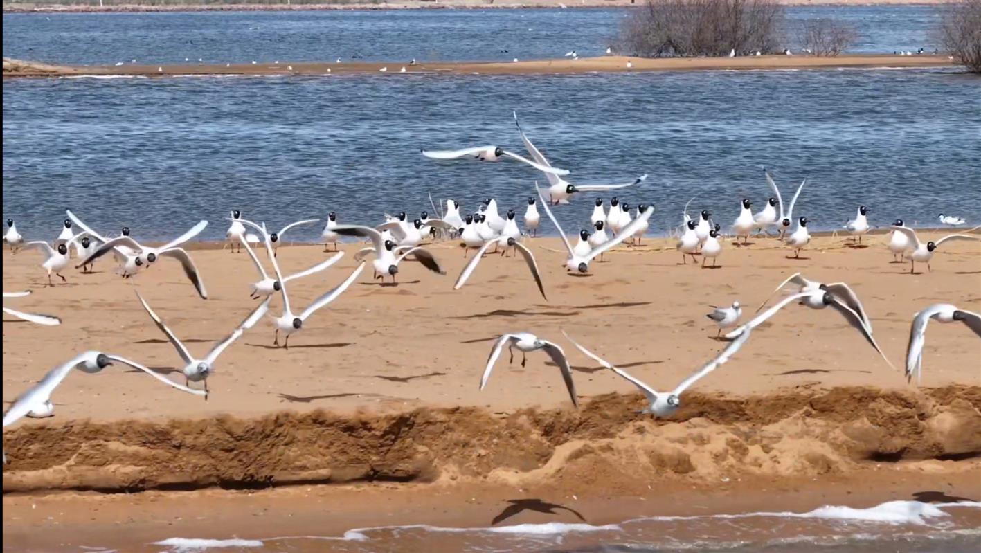 近日,鄂尔多斯市乌审旗图克镇巴音淖尔湖迎来遗鸥等上千只候鸟停歇栖息。当地通过小流域治理、生态补水、马背巡护等多项举措,持续守护候鸟栖息家园,筑牢生态安全屏障。