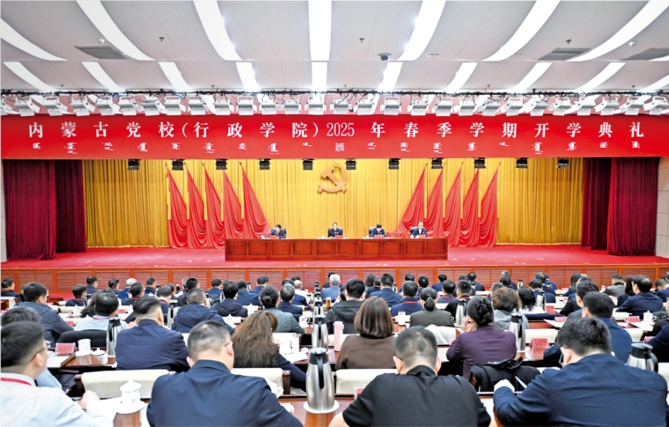 3月1日,内蒙古党校(行政学院)举行2025年春季学期开学典礼。自治区党委书记、内蒙古党校(行政学院)校长(院长)孙绍骋出席并讲话。马建兵 摄
