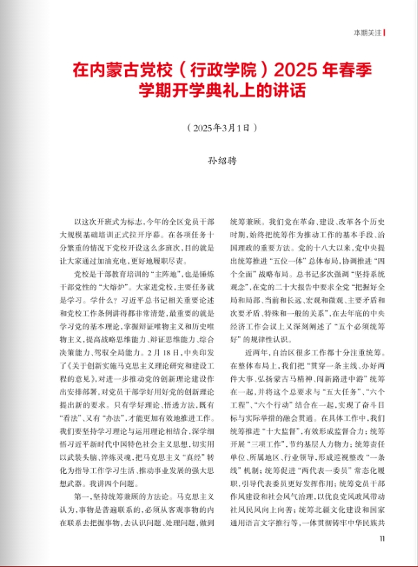 在内蒙古党校(行政学院)2025年春季学期开学典礼上的讲话