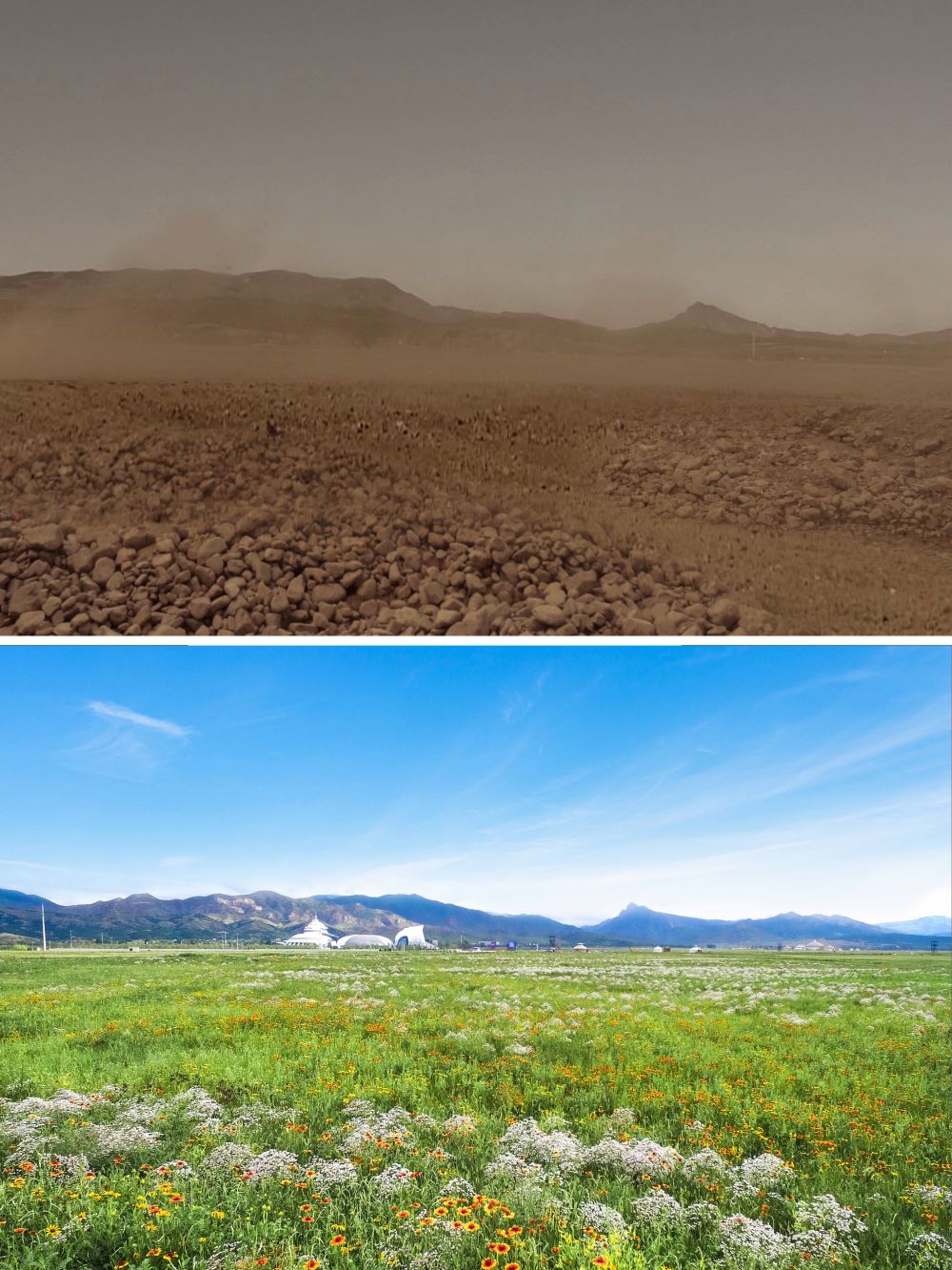 眼下,内蒙古呼和浩特市新城区敕勒川生态草原观光带核心区秋草已黄,尽显苍茫。然而10多年前,这里还是荒石滩,难见绿色。经过多年治理,近3万亩土地重披绿装,成为远近闻名的生态旅游打卡地。