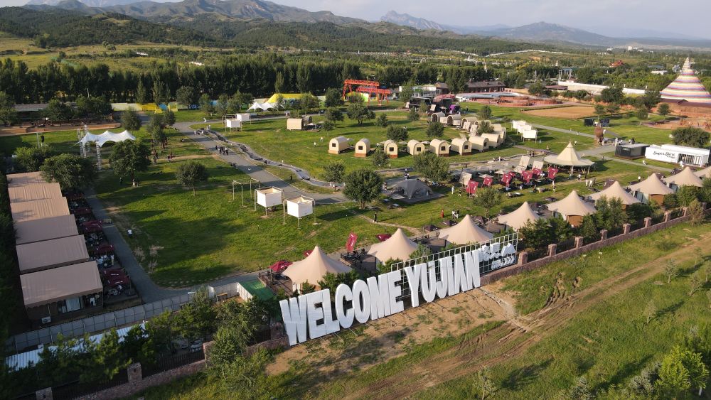 峪见小镇坐落在新城区古路板村,是一处改建自废弃水泥管厂的露营地,“草原露营+马术旅拍+星空咖啡”的混合业态吸引不少游客。“我们将园区内80%的空间免费开放,依托敕勒川草原这一旅游名片,小镇自开业起便深受游客欢迎,单日最高接待量近3000人次。”峪见小镇负责人吕春辉说。