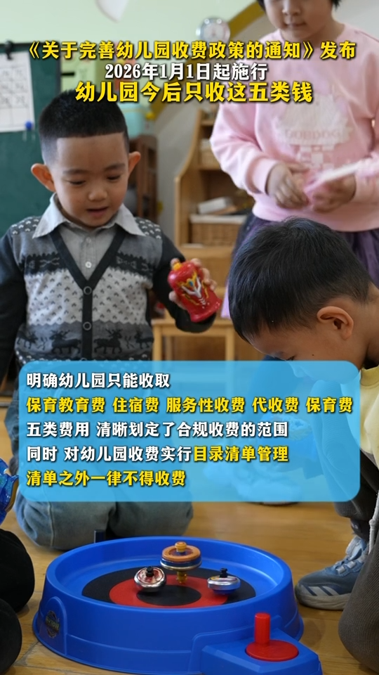 《关于完善幼儿园收费政策的通知》发布 2026年1月1日起施行 幼儿园今后只收这五类钱