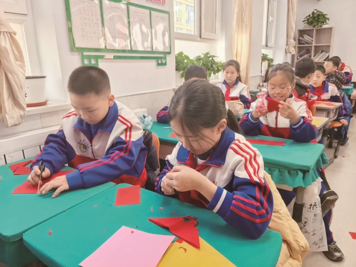 近年来,我市各地各部门通过开展形式多样的文化进校园活动,积极探索将非遗资源转化为鲜活的校园教学内容,让孩子们近距离感受中华优秀传统文化独特魅力,培养他们的实践能力与审美素养,让非遗技艺在青少年手中薪火相传。图为近日,准格尔旗薛家湾镇第一小学学生在旗文联“崇德尚艺”文艺志愿服务队的指导下,进行非遗手工制作。 翁恩奇 摄