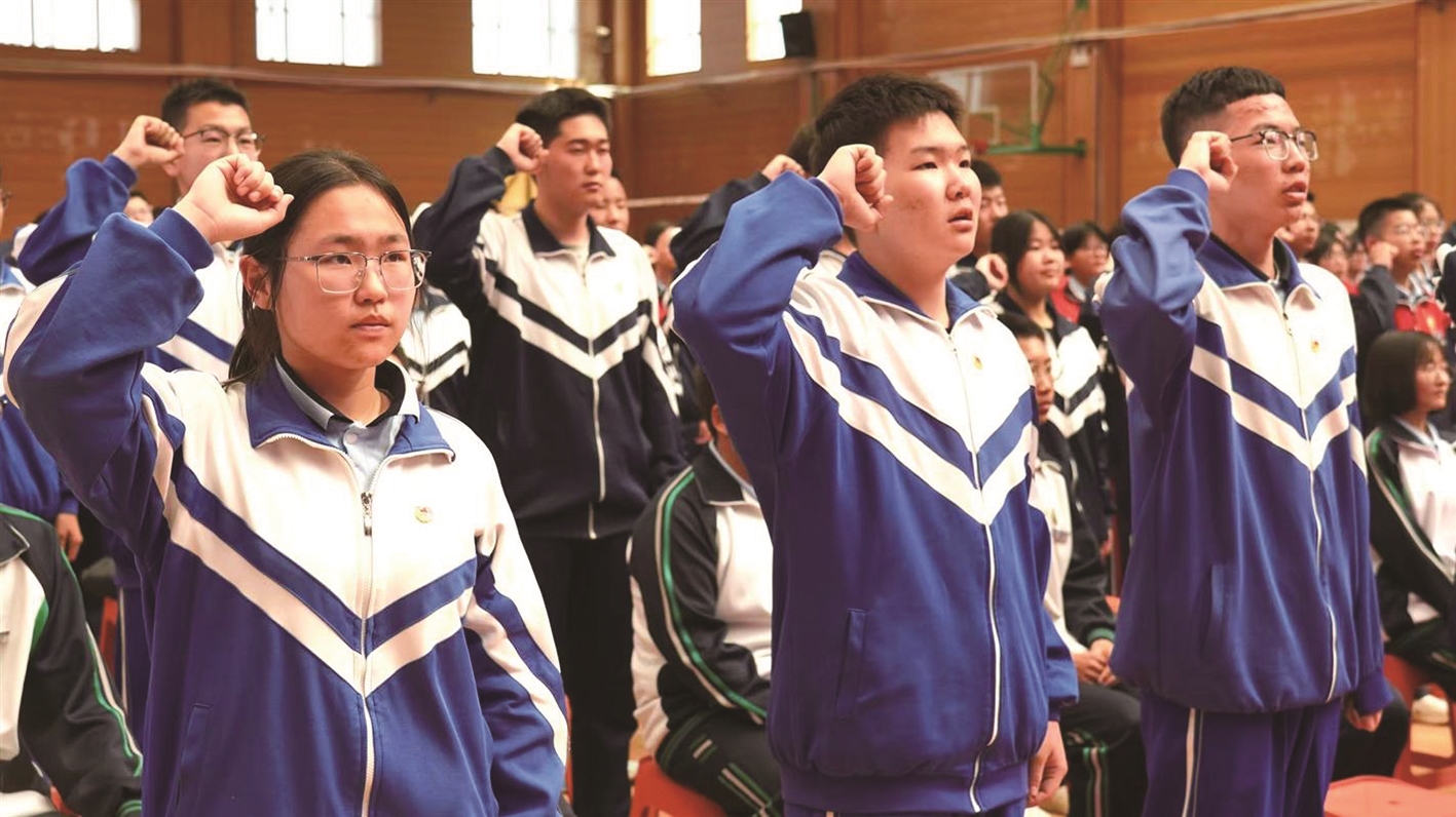 4月27日,“青春立志跟党走 暖城载梦启新程”2026年鄂尔多斯市示范性入团仪式在杭锦旗第一中学举行。 入团仪式上宣读了2026年新团员名单,为新团员代表佩戴团徽、颁发团员证,全体团员进行了宣誓。来自杭锦旗第一中学、第二中学、第三中学的200名优秀青年学生光荣加入中国共产主义青年团。 市融媒体中心记者 刘亚楠 摄