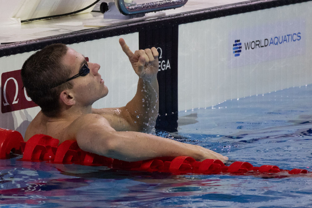 男子100米仰泳决赛中,以中立身份参赛的俄罗斯18岁小将利芬采夫以48秒76打破世界青年纪录并摘金,东道主选手科什和波兰选手斯托科夫斯基分获亚军和季军。
