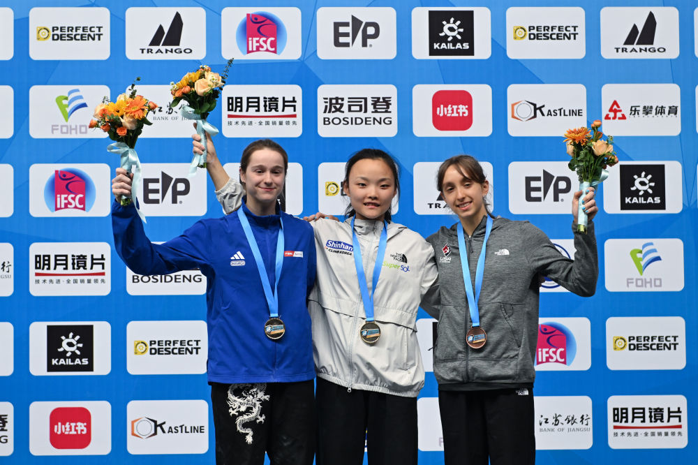 在27日晚的女子决赛中,麦克尼斯和徐采铉的攀爬高度均为41(即线路上的第41个岩点),两人在半决赛和预赛的成绩也完全相同,更令人吃惊的是,两人在决赛中的攀爬时间都是4分26秒。最终两人并列冠军。中国选手张悦彤排名第六。