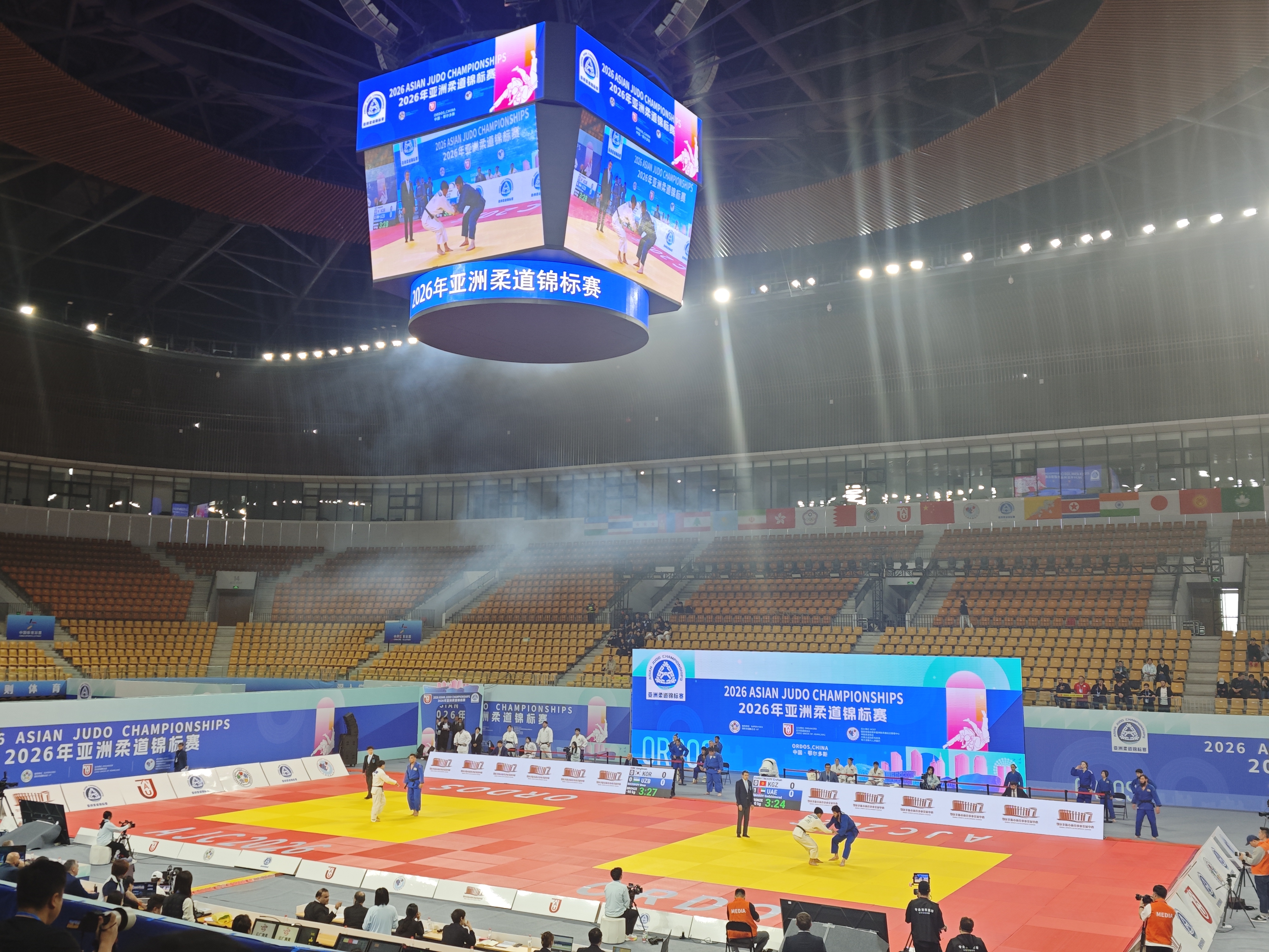4月19日下午,2026 年亚洲柔道锦标赛混合团体赛决赛在鄂尔多斯市体育事业发展中心体育馆激情上演。作为本届赛事的收官之战,混合团体决赛汇聚亚洲柔道强队,以团队协作与综合实力决出最终荣耀,为本届亚洲柔道盛会画上圆满句号。