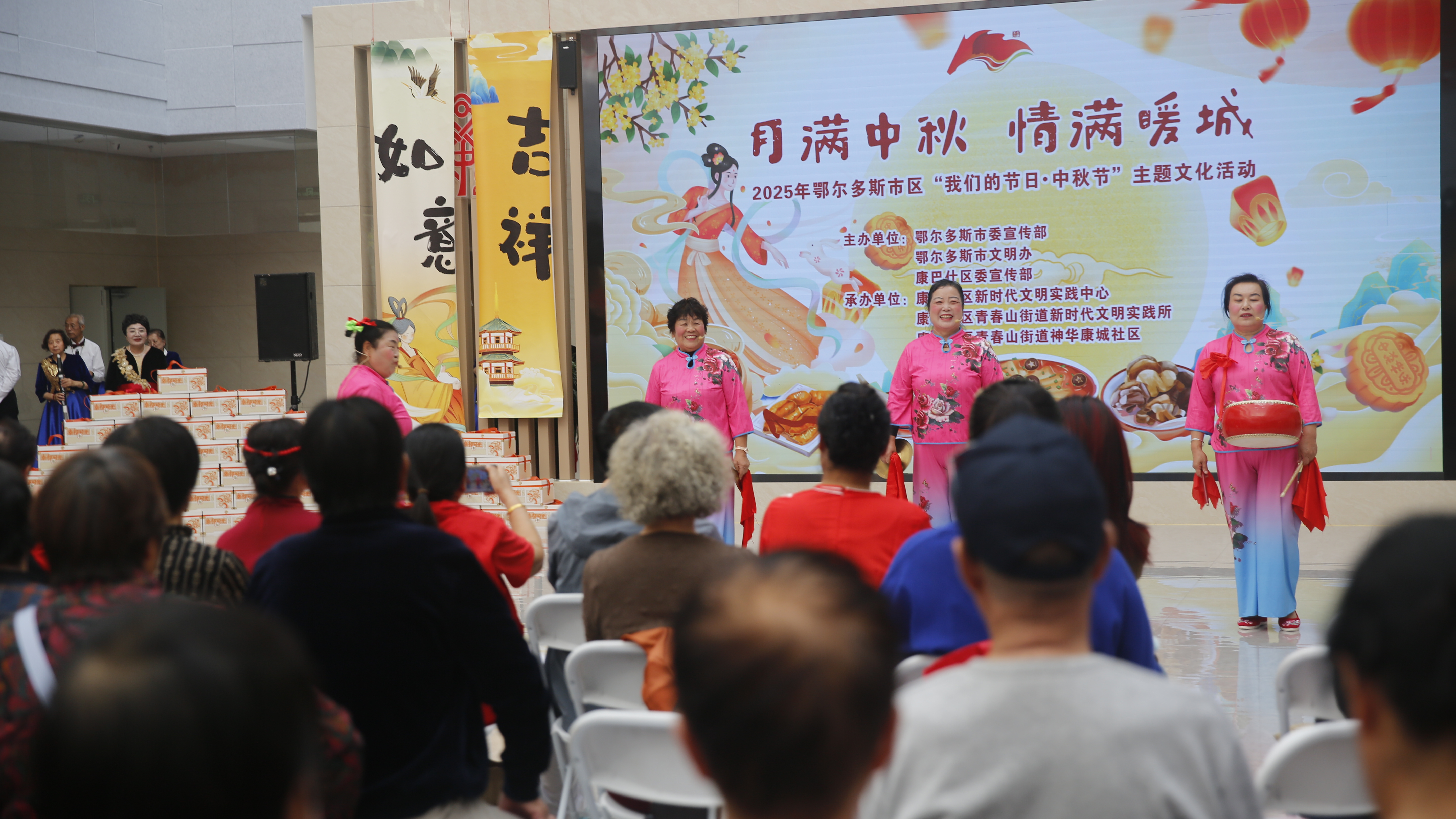 秋色如许,月华如水。为弘扬中华民族优秀传统文化,营造喜庆祥和的节日氛围,9月30日,由鄂尔多斯市委宣传部、鄂尔多斯市文明办、康巴什区委宣传部主办,康巴什区新时代文明实践服务中心、康巴什区青春山街道、康巴什区青春山街道神华康城社区承办的2025年鄂尔多斯市区“月满中秋 情满暖城”“我们的节日·中秋节”主题文化活动在神华康城社区隆重举行。