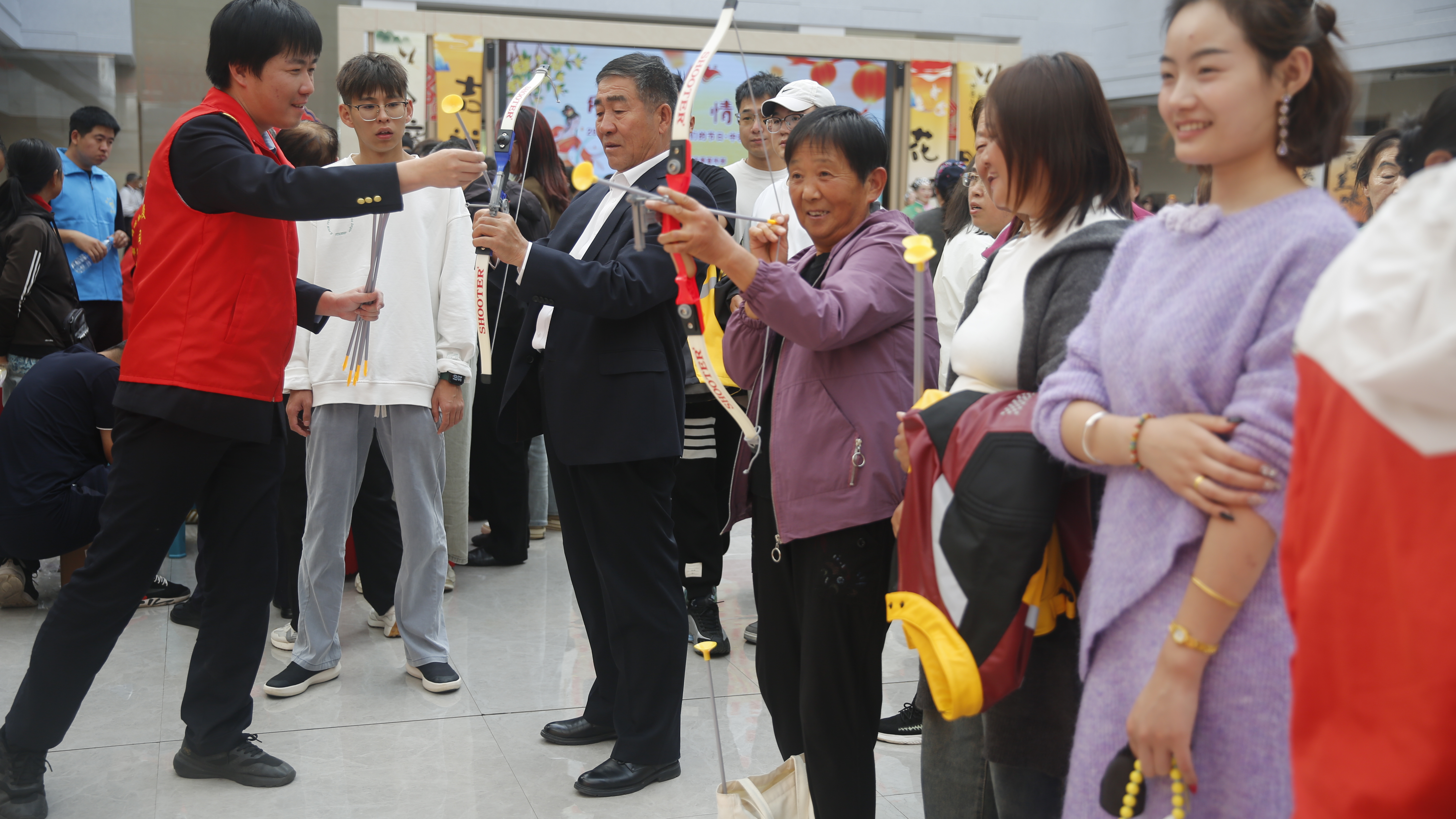 精彩互动,凝聚团圆和谐之力。除了静态体验,动态游戏区也人气爆棚。后羿射日场地排起了长队,“中了!中了!”的喝彩声此起彼伏,古人的雅致游戏在今天依然焕发着迷人魅力。中秋套圈游戏更是将现场气氛推向高潮,大小朋友们全神贯注,只为将心仪的奖品“套”回家。夹月饼游戏区也不时传来阵阵欢呼声。