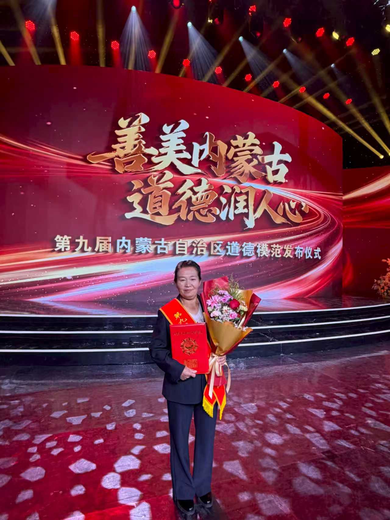 鄂尔多斯市首届全国道德模范乌兰其其格为孝老爱亲道德模范颁奖