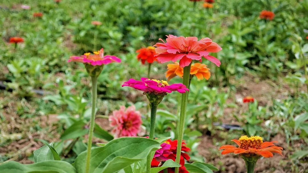清晨,微风轻拂,带着一丝清凉,唤醒了沉睡中的百日菊。它们从梦中醒来,轻轻摇曳,如同害羞的少女,绽放着那一抹抹绚丽的色彩。百日菊的花期虽长,却从不张扬,它们静静地开在路旁、田间,为这燥热的夏日增添了一抹清新的色彩。