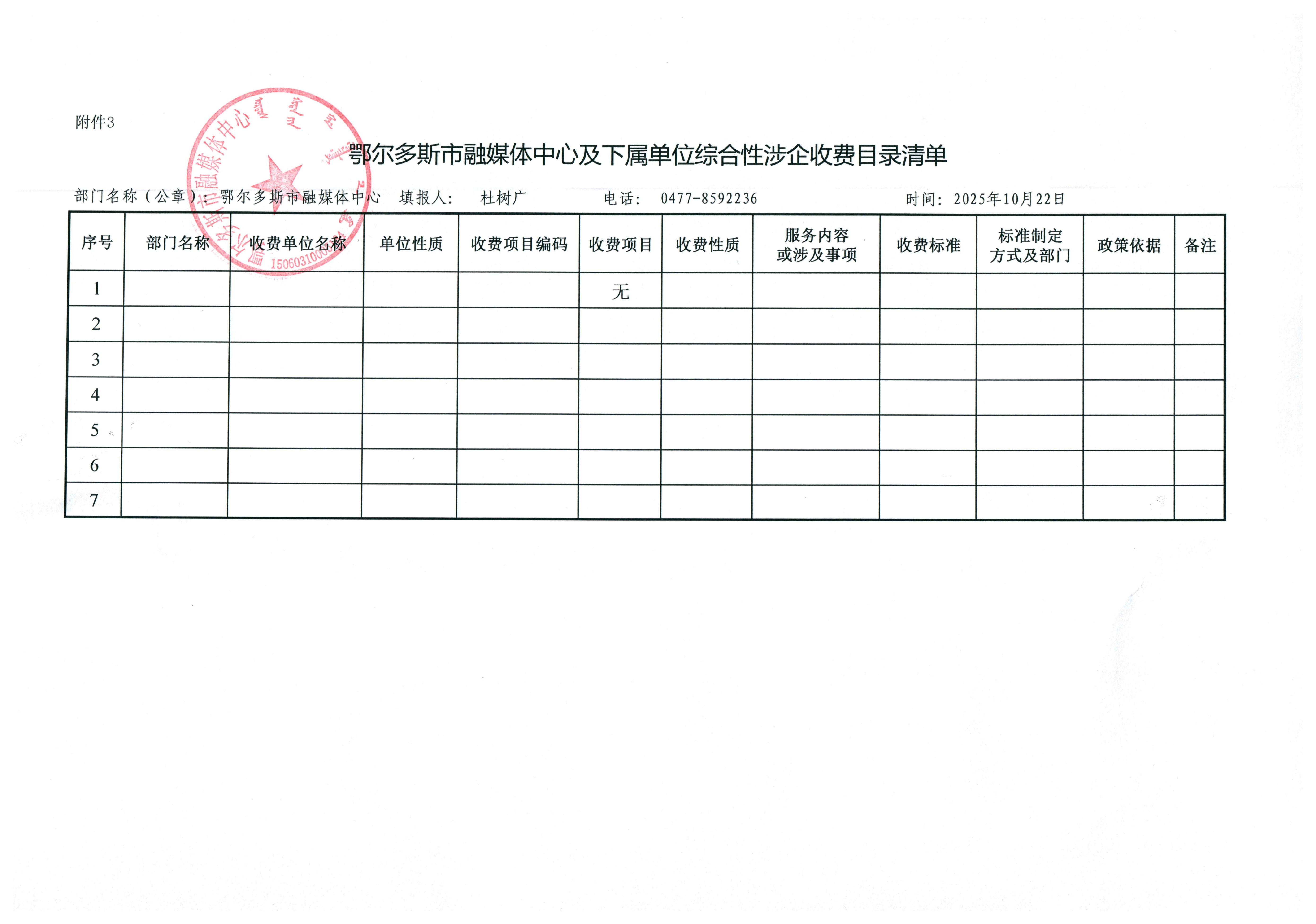 鄂尔多斯融媒体中心及下属单位综合性涉企收费目录清单