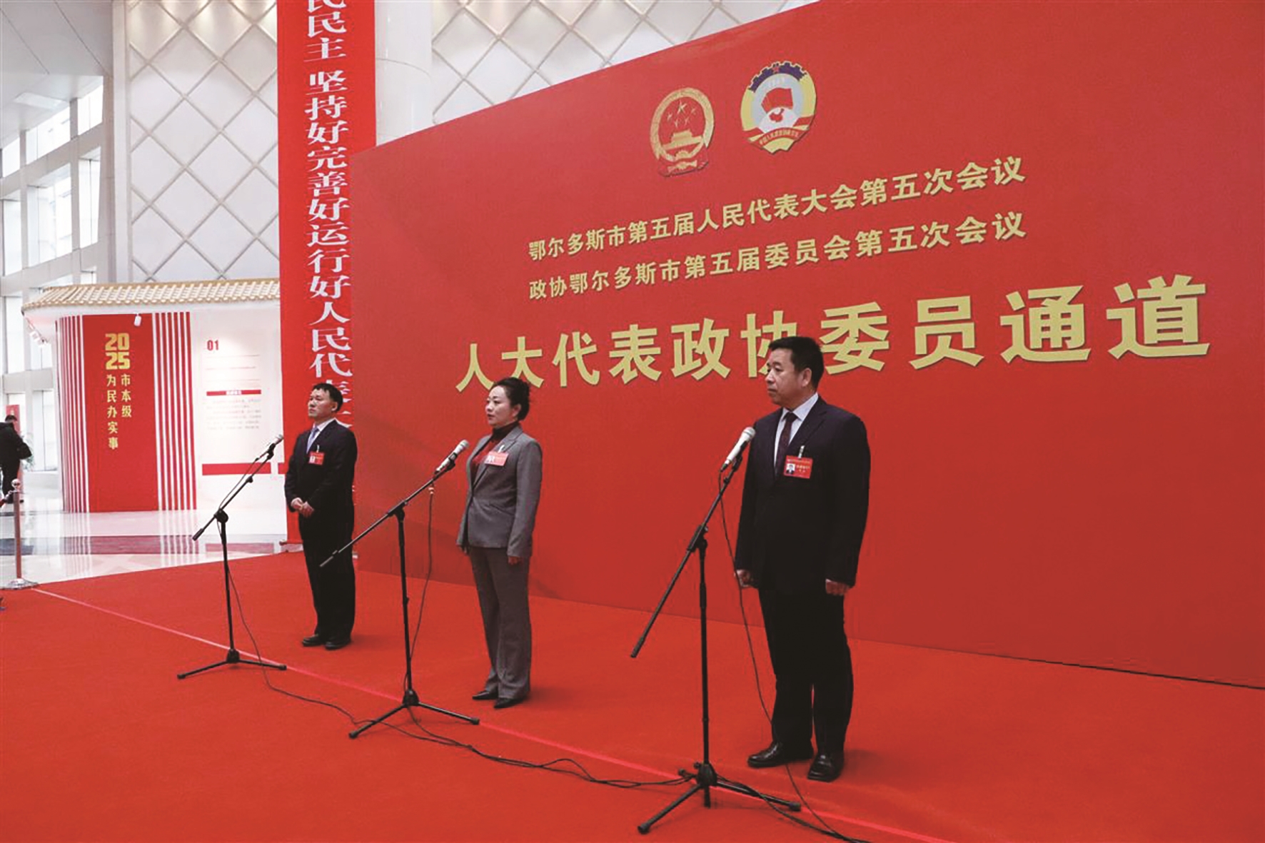 1月27日,鄂尔多斯市人大代表政协委员通道第三场开启。市政协委员刘喜、李丽、郭振接受采访,聚焦医疗救治、宜居建设、养老提质等民生热点,为百姓幸福生活建言献策。 市融媒体中心记者 李慧 摄